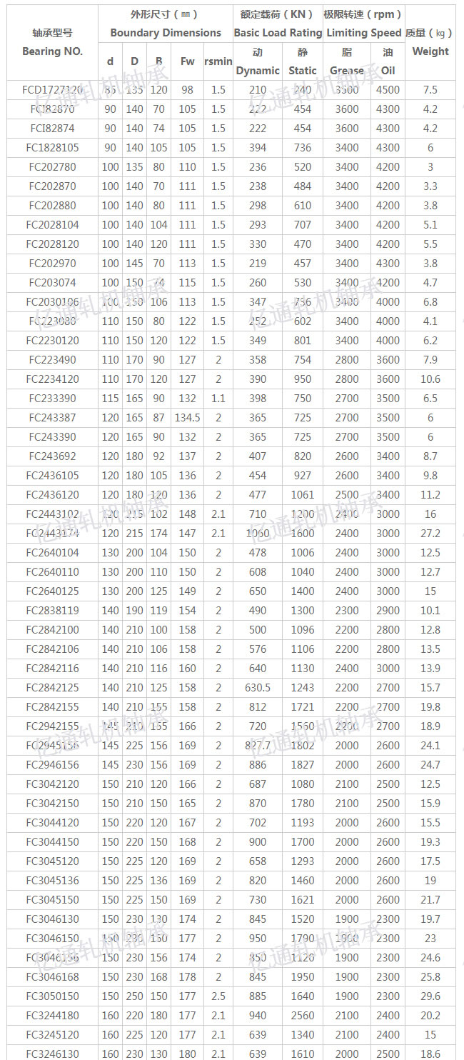 FC型—由兩個雙滾道外圈與一個單內(nèi)圈、兩個梳狀保持架及若干滾動體組成。
