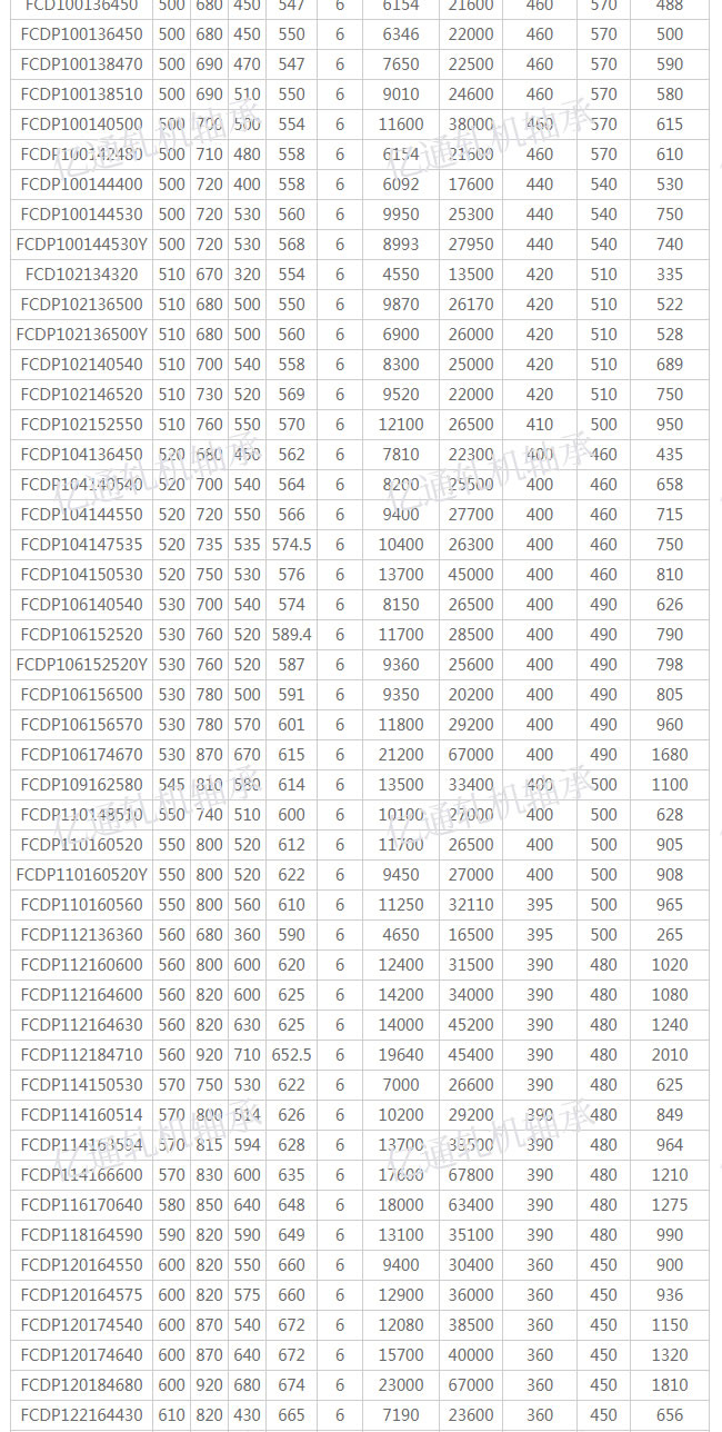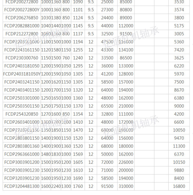 FCDP型—外圈的兩側(cè)擋邊為活動擋圈,保持架為窗式結(jié)構(gòu)或支柱結(jié)構(gòu)(空心滾子),主要用于大型及***型。