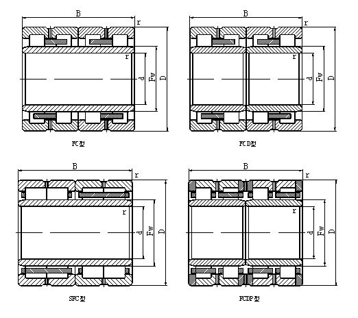 軋機(jī)用四列圓柱滾子軸承其結(jié)構(gòu)主要有以下幾種基本型式。