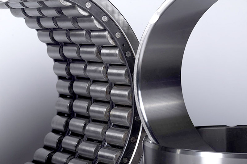 軋機(jī)用四列圓柱滾子軸承主要應(yīng)用于冶金軋鋼機(jī)輥頸及其他重型機(jī)械,其徑向尺寸較小極限轉(zhuǎn)速較高,徑向承載能力高,但不能承受軸向負(fù)荷,所有軋機(jī)用四列圓柱滾子軸承都要與止推定位軸承配套使用,如深溝球軸承、角接觸球軸承、推力軸承、圓錐滾子軸承等。